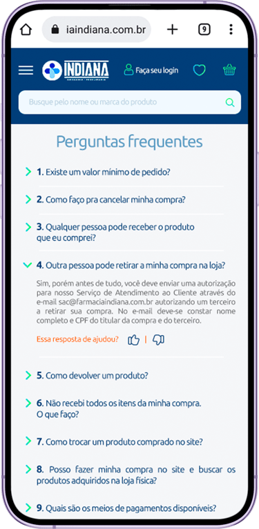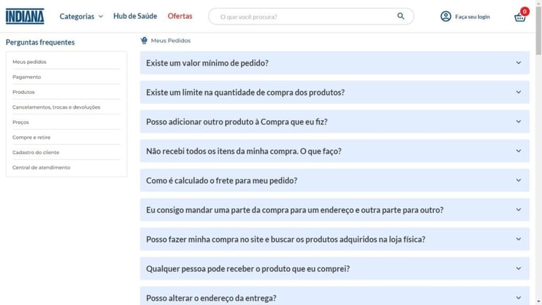 A partir da tela inicial é possível encontrar as repostas para as dúvidas mais frequentes.