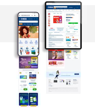 O Benchmarking serviu para analisar alguns players do mesmo segmento, para entender aspectos como usabilidade, organização do conteúdo, responsividade, recursos, jornada de compra, entre outras variáveis.